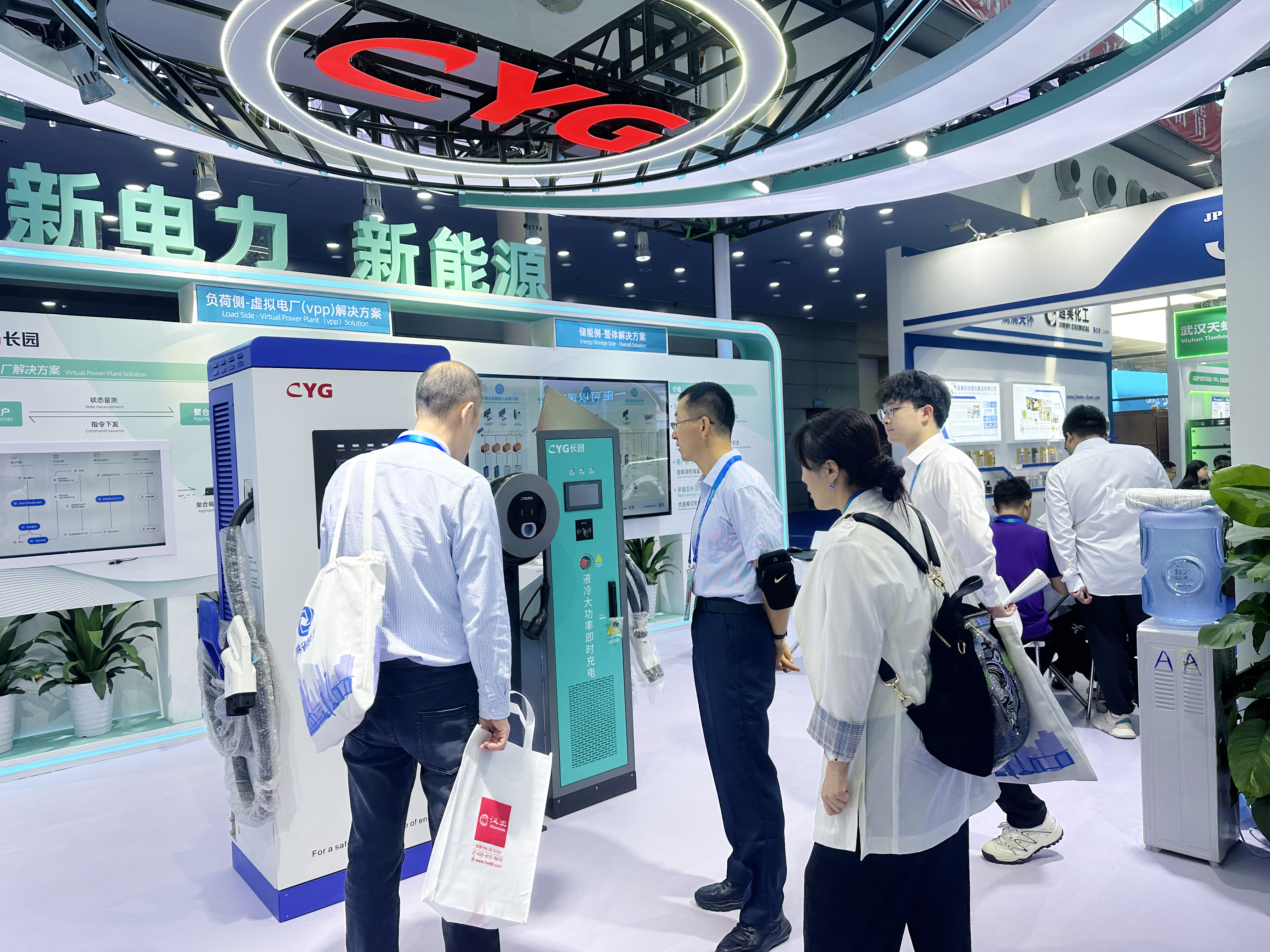 555000jcjc公海携旗下多家产业公司亮相,集中展示“光储充及双碳服务”的新型电力系统解决方案,“电动车充电柱、光伏发电量优化器、虚拟电厂”等新能源领域的新技术、新产品大放异彩,吸引了来往观众驻足询问,亮出了555000jcjc公海“新”实力。